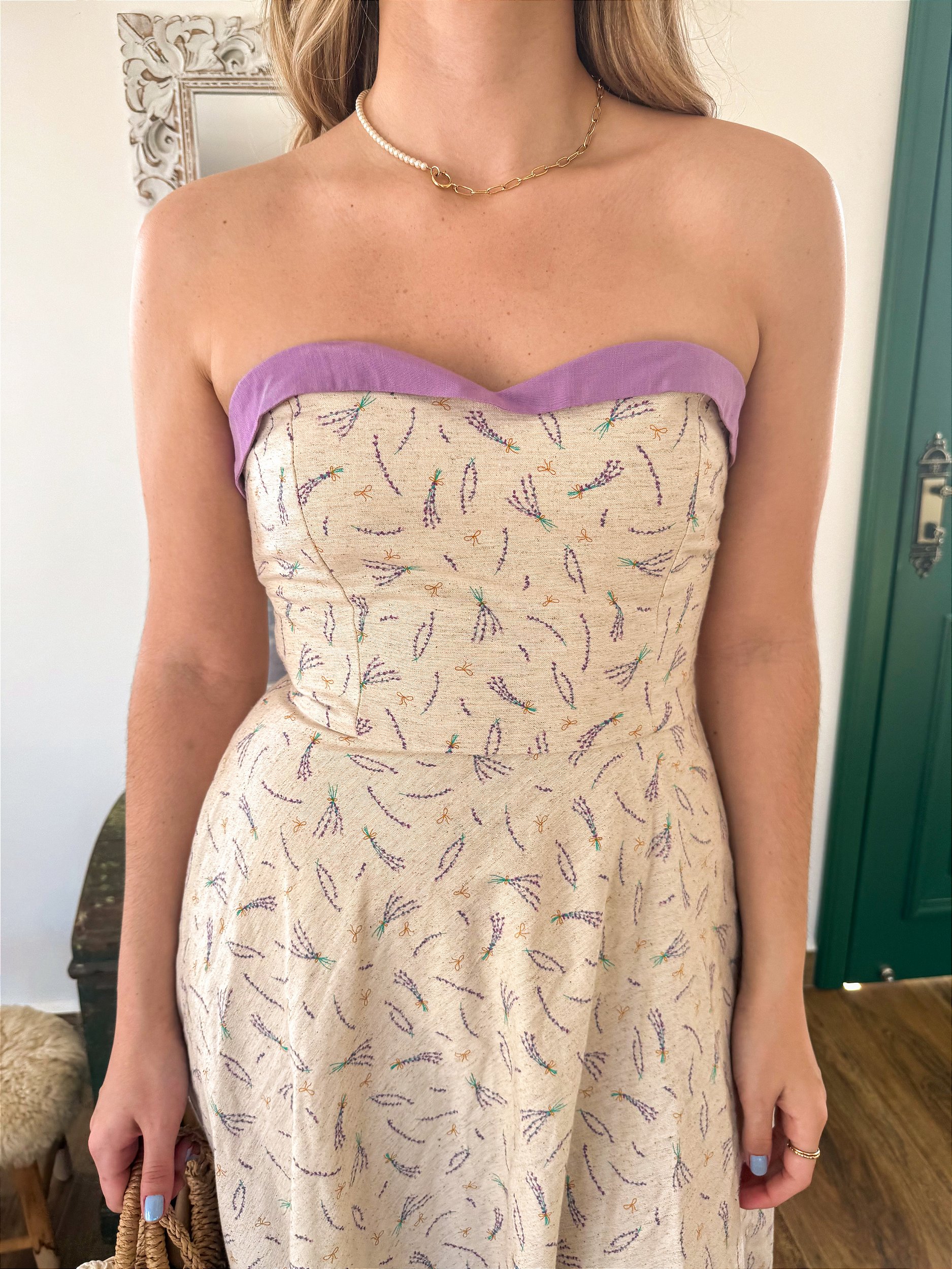 Esse é aquele vestido pra sonhar acordada! Romântico na medida e super delicado, o linho traz aquele toque feminino com um acabamento minucioso, por dentro e por fora. Seu busto é inteiro forrado pra proporcionar mais segurança no vestir e o fechamento é lateral em zíper. Ele possui detalhes que fazem toda a diferença: A lapela aplicada no busto, barbatanas estruturadas para proporcionar mais sustentação para o seio, além do corset nas costas para o ajuste perfeito da silhueta. A saia godê proporciona todo um movimento que este vestido romântico merece. Meu detalhe favorito, com certeza, é a versatilidade que esse vestido traz na hora de vestirmos, principalmente pelas alças removíveis com amarrações nos ombros, podendo tanto se tornar um vestido básico para o dia a dia quanto um vestido de festa e eventos especiais. O comprimento midi da saia deixa tudo ainda mais especial com a elegância dos anos 50 em um vestido de toque vintage e ar effortless.